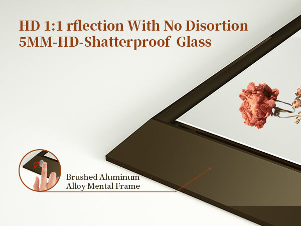 Mirror features beveled stereoscopic aluminum alloy frame with an anodizing process that makes the metal frame waterproof and antirust.